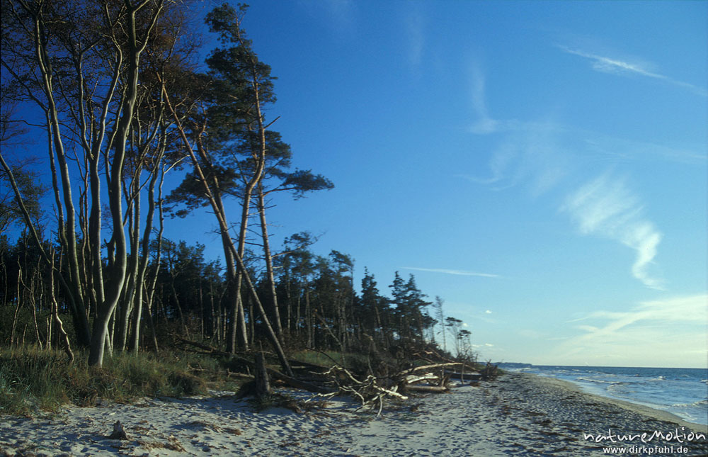 Küstenlinie, Strand und Kiefernwald, Weststrand Darss Darß, Zingst, Deutschland
