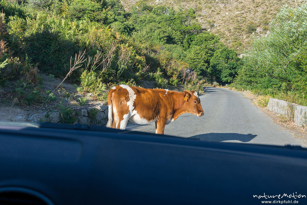 Kuh blockiert Stra?e, Niulo, Korsika, Frankreich