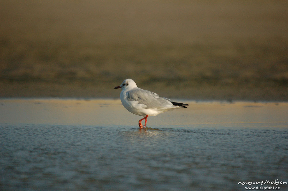 Lachmöwe, Larus ridibundus, Laridae, gehend in Priel, Amrum, Amrum, Deutschland