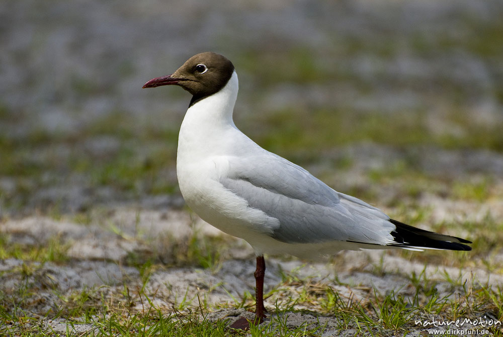 Lachmöwe, Larus ridibundus, Laridae, Tier am Waldboden, Campingplatz Regenbogencamp Prerow, A nature document - not arranged nor manipulated, Darß, Zingst, Deutschland