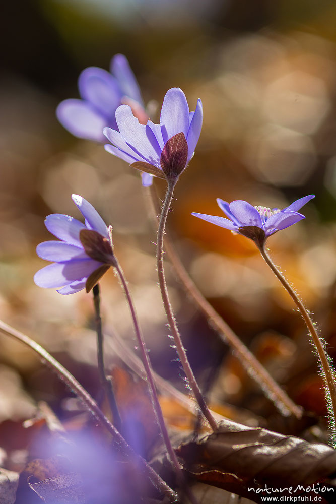 Leberbl?mchen, Hepatica nobilis, Ranunculaceae, Bl?ten im Gegenlicht, Reckershausen, Deutschland