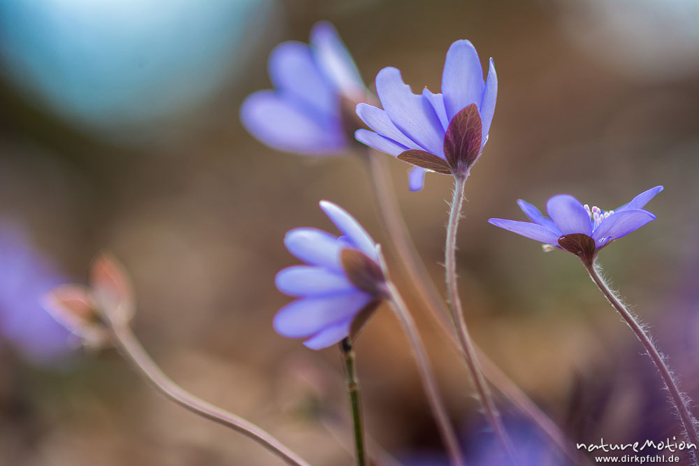 Leberbl?mchen, Hepatica nobilis, Ranunculaceae, Bl?ten im Gegenlicht, Reckershausen, Deutschland