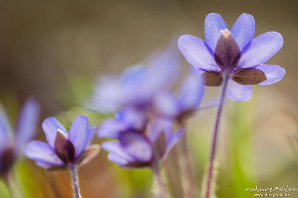Leberblümchen, Hepatica nobilis, Ranunculaceae, Buschwindröschen, Anemone nemorosa, Ranunculaceae, Blütenteppich, Geismarer Wald, Focus Stacking, Göttingen, Deutschland