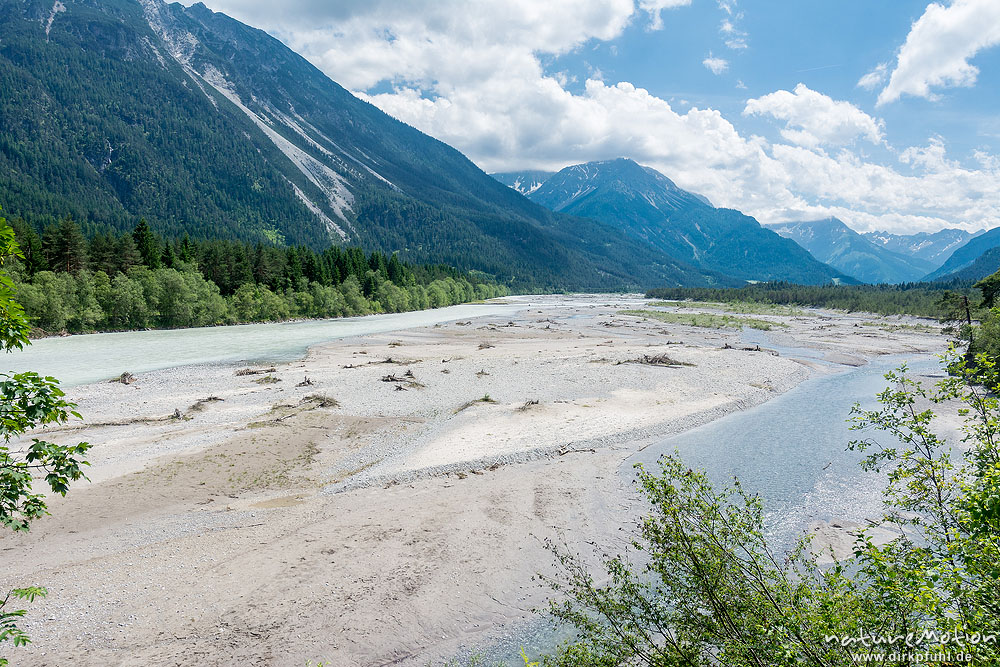 Lechtal, naturnaher Alpenfluss, Kiesbänke, Weißenbach, Österreich