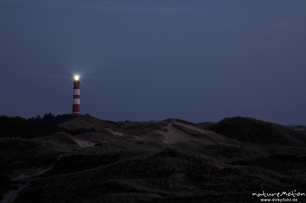 Leuchtturm von Amrum, längere Belichtung zur Darstellung des Lichtstrahls Amrum, Deutschland