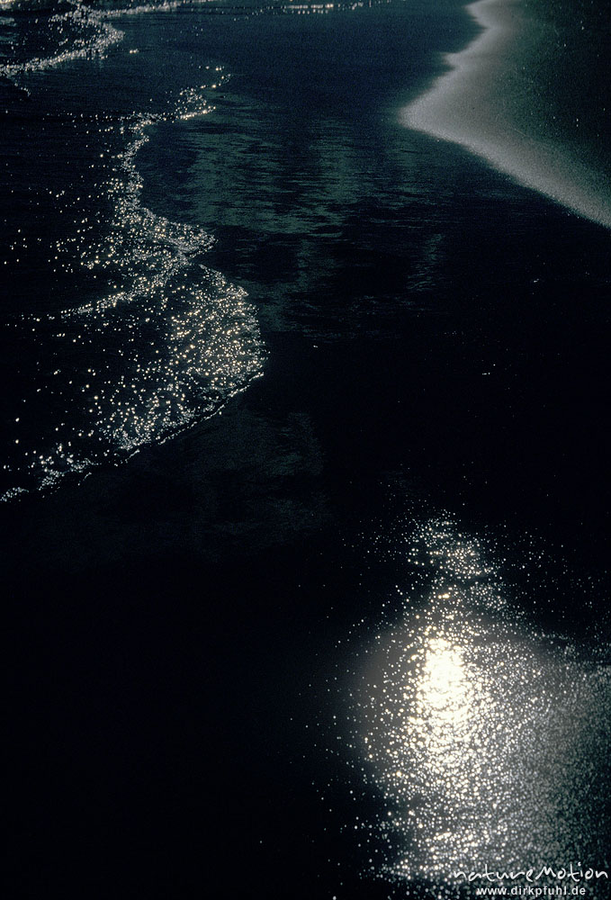 Lichtspiel, reflektierendes Sonnenlicht auf nassem Sand, Saint-Maries-de- la-Mer, , Frankreich
