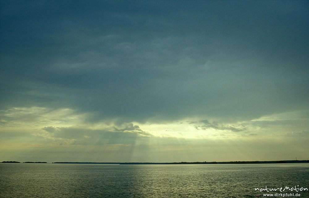 Lichtstrahlen aus bewölktem Himmel auf Bodden, Darß, Zingst, Deutschland