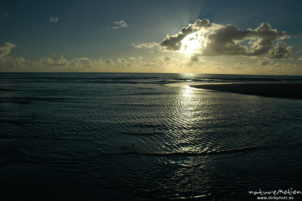 Lichtstrahlen der untergehenden Sonne, Meer und  Wolken, Amrum, Amrum, Deutschland