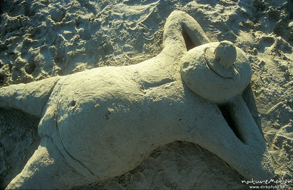 liegender Mann aus Sand, Strand, Bretagne, Frankreich