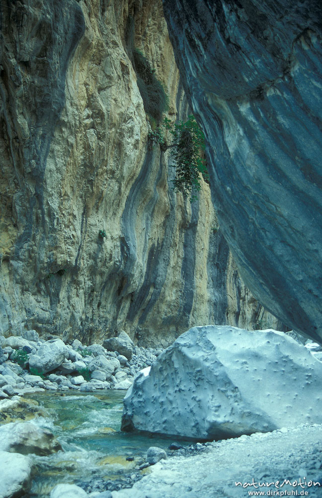 Linien im Fels, ausgewaschenes Bachbett, Einschnitt, Klamm, Sammaria-Schlucht, Kreta, Griechenland