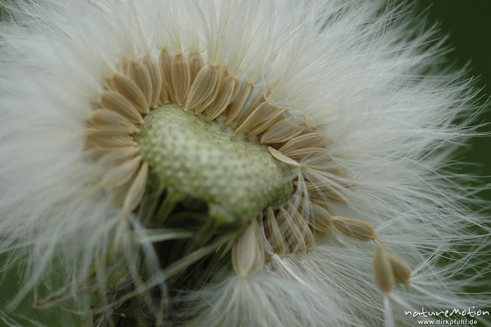 Löwenzahn, Fruchtstand, halb weggeblasen, Früchte mit Pappus, nicht ganz scharf ,