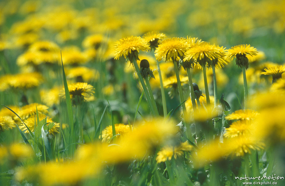 Löwenzahn, Taraxacum officinale, Asteraceae, blühend, Bestand auf Wiese, Kirschplantagen bei Witzenhausen, Witzenhausen, Deutschland