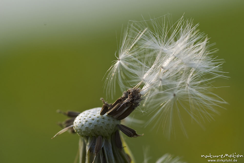 Löwenzahn, Taraxacum officinale, Asteraceae, Fruchtstand mit nur noch wenigen Samen Würgassen, Deutschland