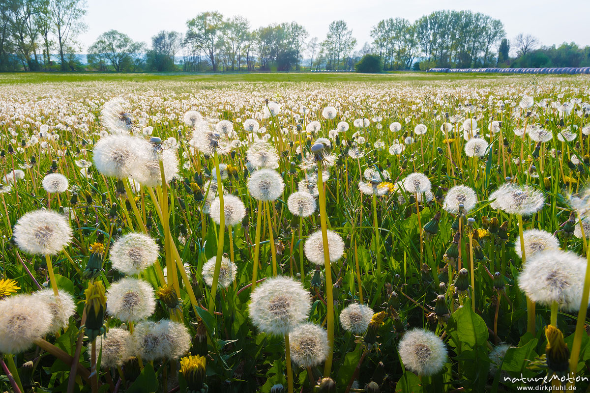 Löwenzahn, Taraxacum officinale, Asteraceae, Wiese mit Fruchtständen, Gartetal, Göttingen, Deutschland