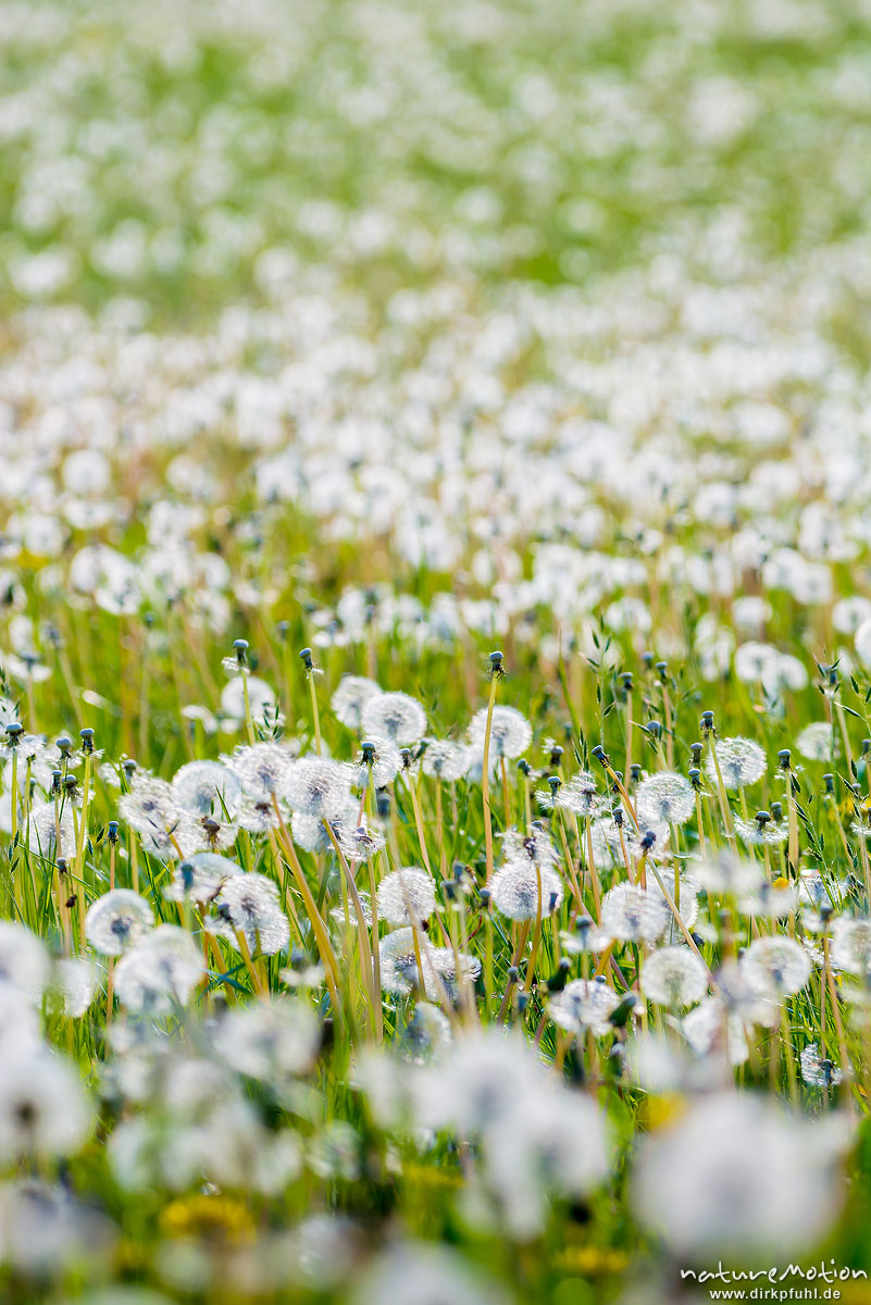 Löwenzahn, Taraxacum officinale, Asteraceae, Wiese mit Fruchtständen, Gartetal, Göttingen, Deutschland