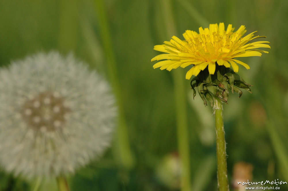 Löwenzahn, Taraxacum officinale, Blütenstand und Fruchtstand, Gartetal Göttingen, Deutschland