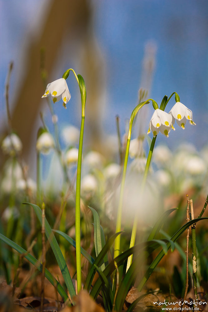 Märzenbecher, Leucojum vernum, Amaryllidaceae, Blüten und dichter Bestand, Westerberg, Göttinger Wald, Göttingen, Deutschland