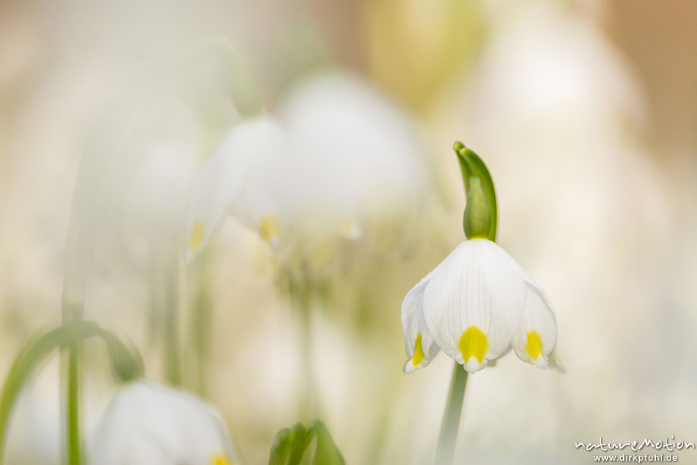 Märzenbecher, Leucojum vernum, Amaryllidaceae, dichter Bestand blühender Pflanzen im Buchenwald, Lei, Göttingen, Deutschland