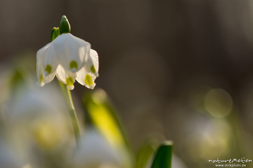 Märzenbecher, Leucojum vernum, Amaryllidaceae, dichter Bestand blühender Pflanzen im Buchenwald, Leinebusch, A nature document - not arranged nor manipulated, Göttingen, Deutschland