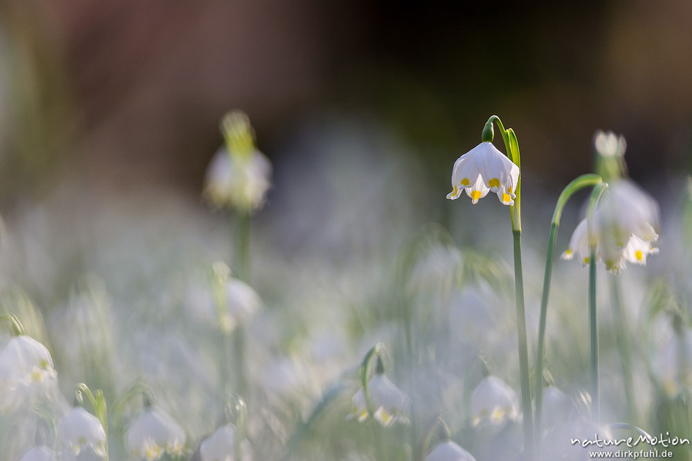 Märzenbecher, Leucojum vernum, Amaryllidaceae, dichter Bestand blühender Pflanzen im Buchenwald, Leinebusch, A nature document - not arranged nor manipulated, Göttingen, Deutschland
