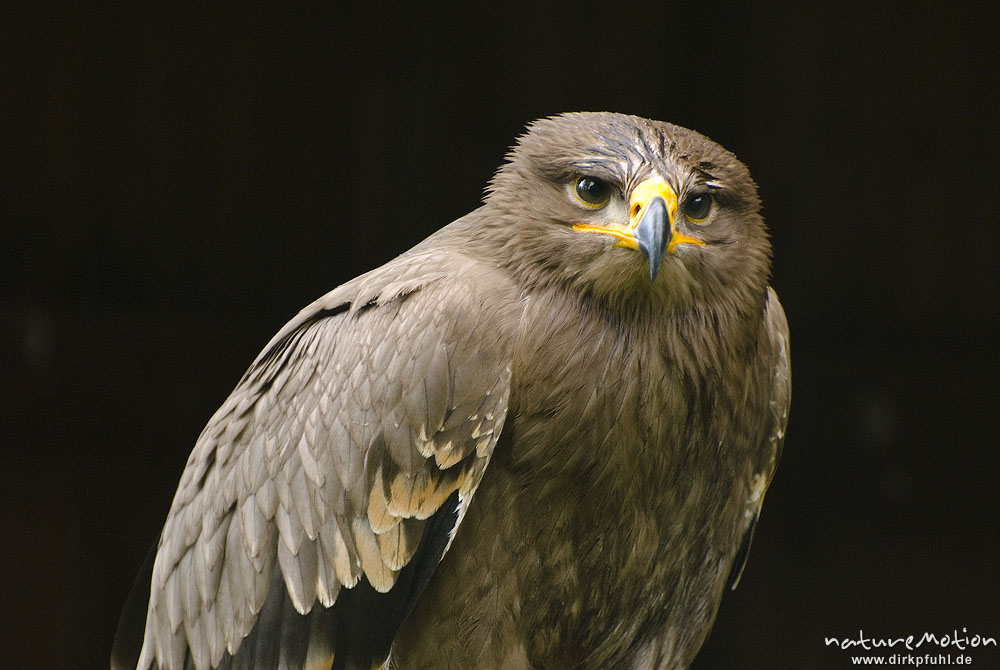 Mäusebussard, Buteo buteo, Habichtartige (Accipitridae), Kopf, Falknerei Tierpark Sababurg, captive, Sababurg, Deutschland