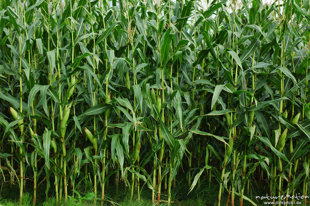 Mais, Zea mais, Pflanzenreihe am Feldrand, Proitzer Mühle Wendland, Deutschland