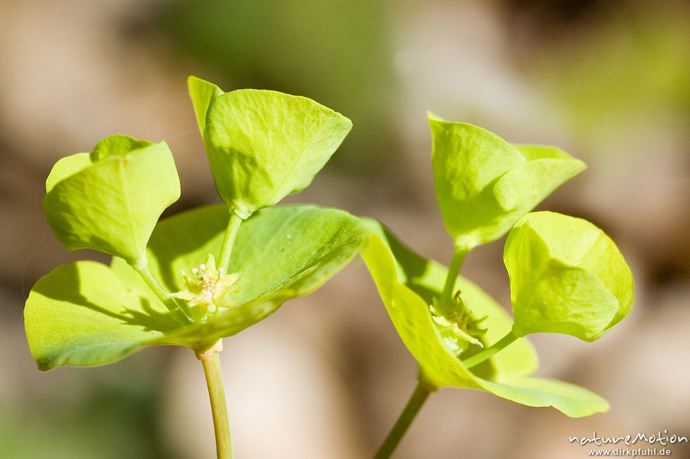 Mandelblättrige Wolfsmilch, Euphorbia amygdaloides, Euphorbiaceae, Blüten, Kombination aus zwei Bildern mit unterschiedlicher Schärfeebene, Göttingen, Deutschland
