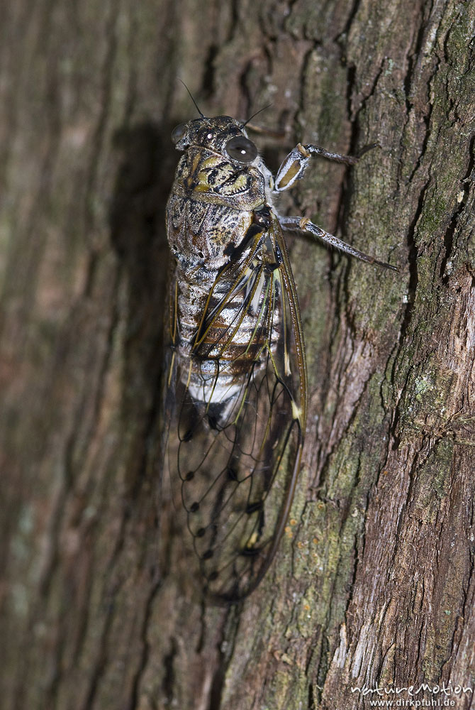 Manna-Singzikade, Eschenzikade, Cicada orni, Singzikaden (Cicadidae), an Stamm der Manna-Esche, Osor, Kroatien