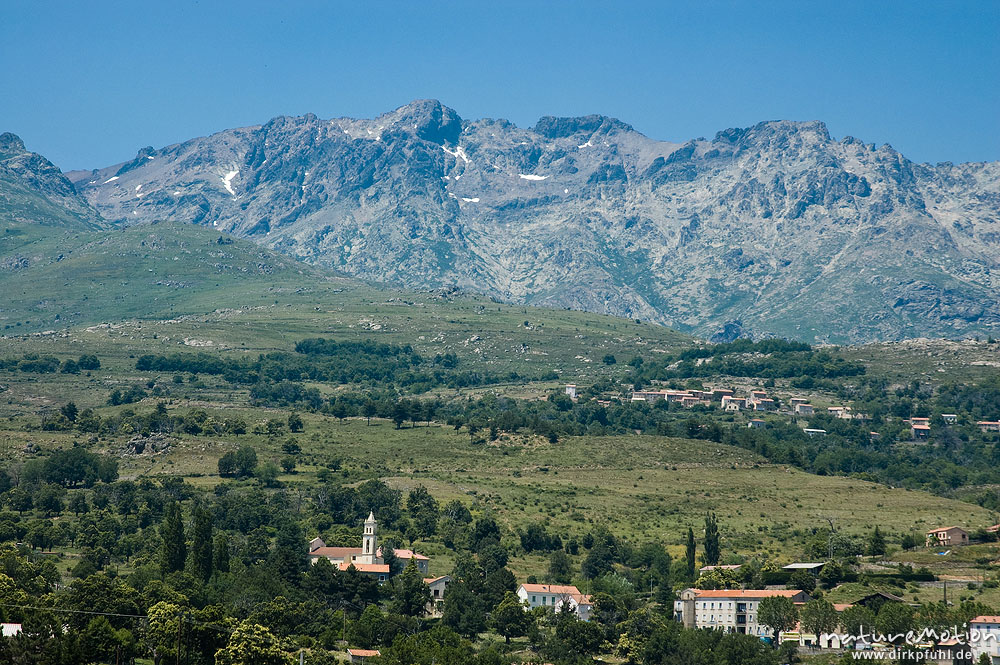 Massiv des Monte Cinto, davor der Ort Lozzi Korsika, Frankreich