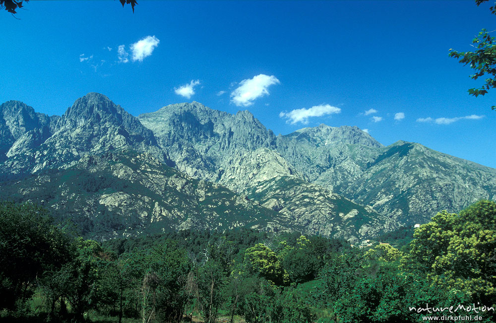 Massiv des Monte d'Oro, Kastanienbäume, bei Tattone, Korsika, Frankreich