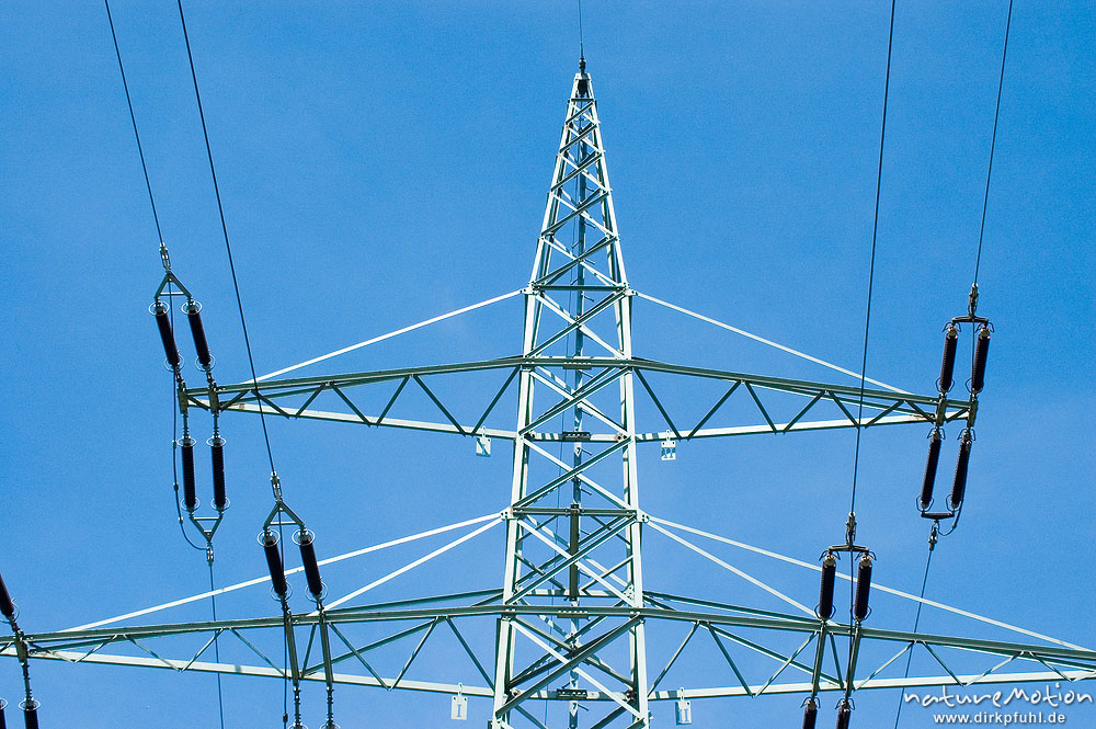 Mast einer Hochspannungsleitung mit Isolatoren Witzenhausen, Deutschland