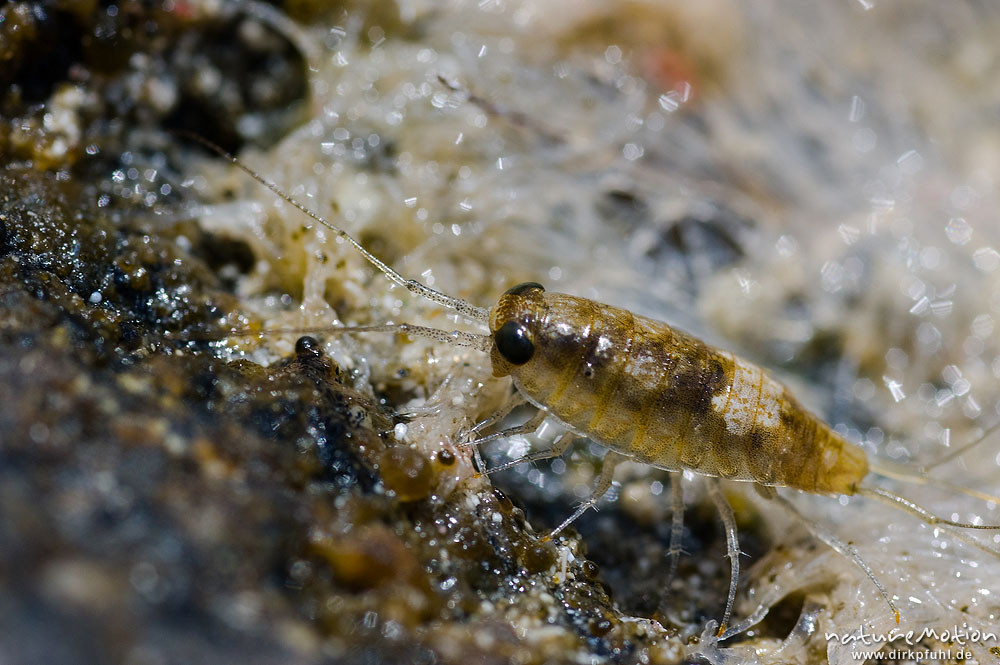 Meerassel, Idotea spec., Idoteidae, auf Felsen, Gezeitenbecken, Bodri Korsika, Frankreich