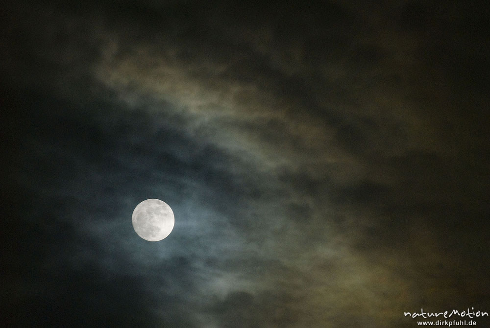 Mond, Vollmond, ziehende Wolken mit Lichthof, Göttingen, Deutschland