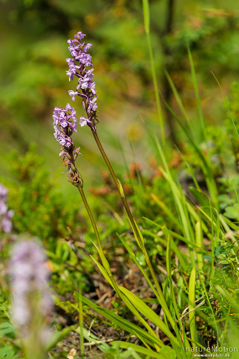 Mücken-Händelwurz, Gymnadenia conopsea, Orchideen (Orchidaceae), blühende Pflanzen, Birkenwald am Ufer des Gjendesees, Jotunheimen, Memurubu, Norwegen