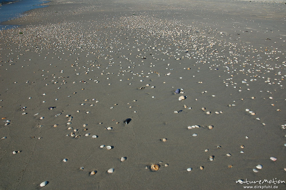 Muschelschalen im Sand, Treibgut, Amrum Amrum, Deutschland