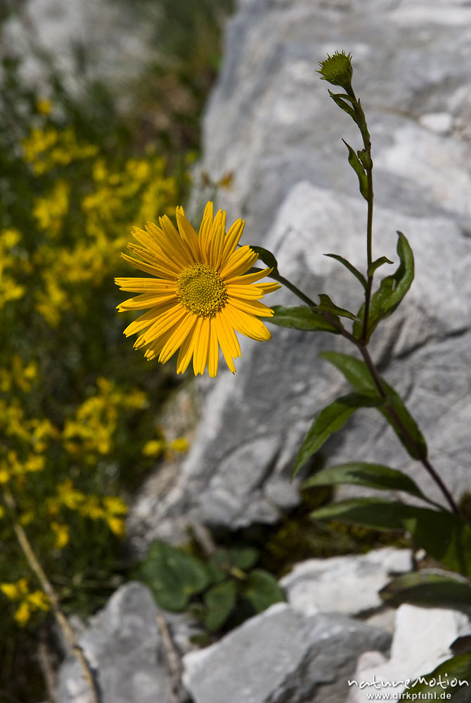 Ochsenauge, Weidenblättriges Ochsenauge, Buphthalmum salicifolium, Korbblütler (Asteraceae), Tal der sieben Seen, Triglav-Nationalpark, Slowenien