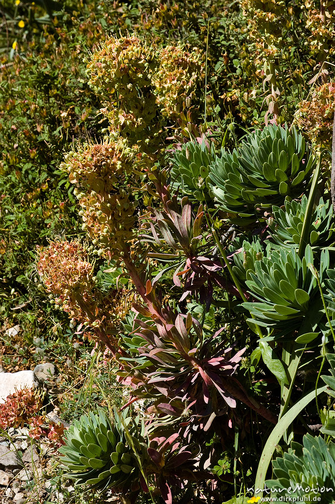 Palisaden-Wolfsmilch, Euphorbia characias, Wolfsmilchgewächse (Euphorbiaceae), Wegrand, Restonica-Tal, Korsika, Frankreich