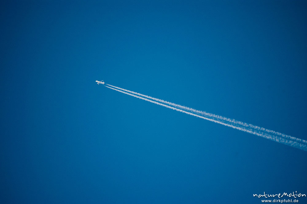 Passagierflugzeug im Flug, mit Kondensstreifen Göttingen, Deutschland