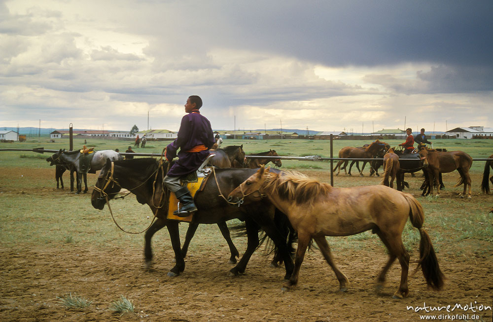 Pferde beim auslaufen nach dem Rennen Changai, Mongolei