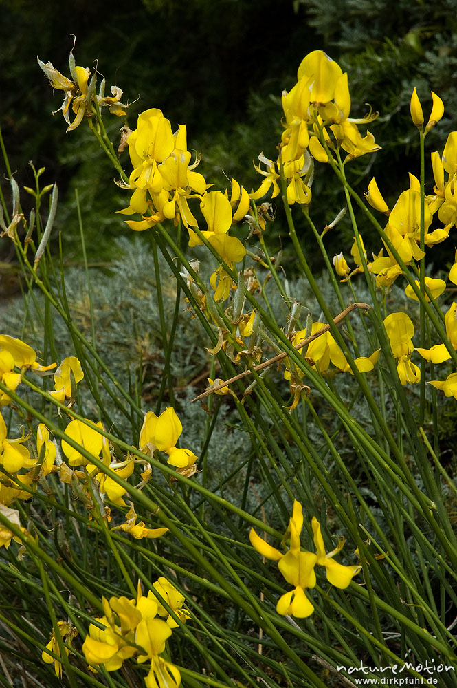 Pfriemenginster, Spanischer Ginster, Spartium junceum, Schmetterlingsblütler (Fabaceae), blühende Pflanzen, Capo Pertusato, Korsika, Frankreich