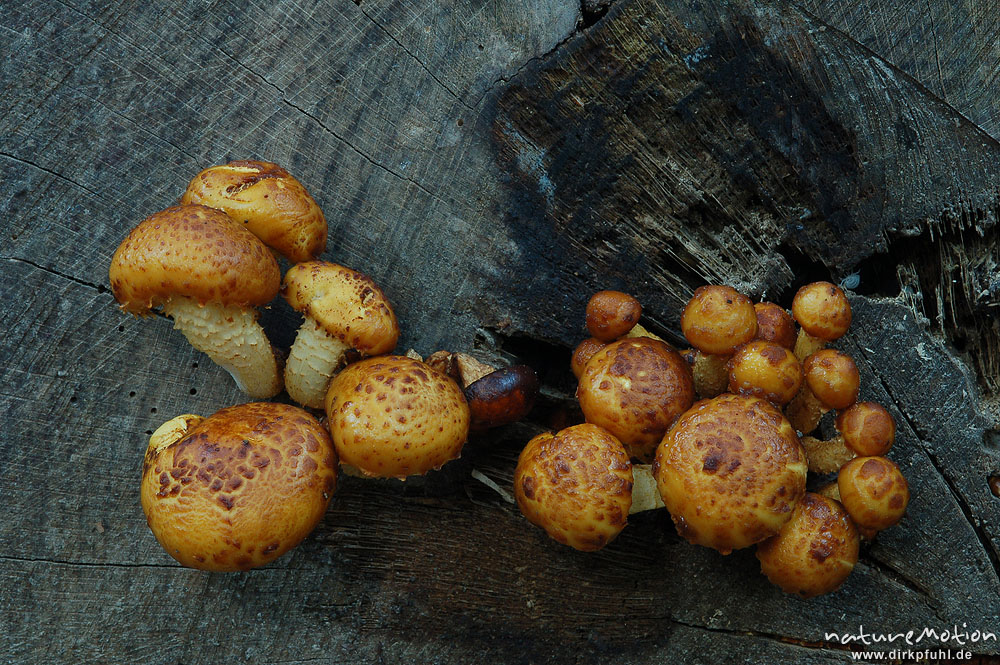 Pilze, Art unbekannt, Fruchtkörper an Baumstumpf, Göttinger Wald Göttingen, Deutschland