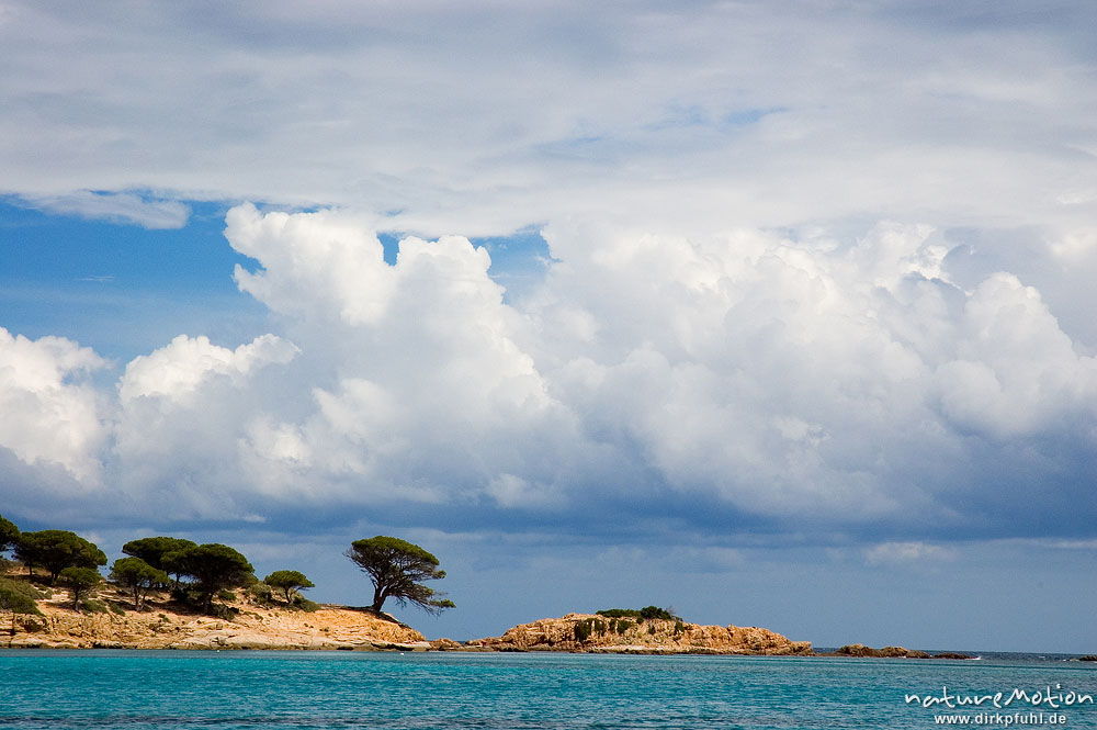 Pinie, Bucht von Ascaghjiu, Wolken, Korsika, Frankreich