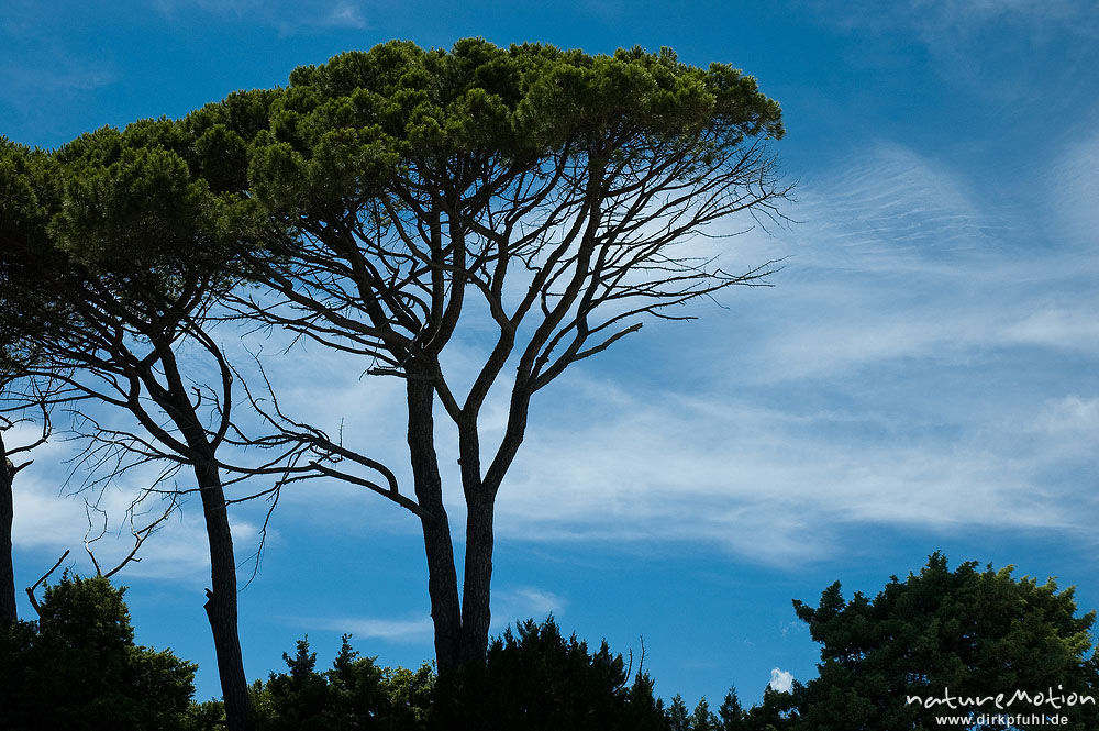 Pinie, Pinus pinea, Pinaceae, Plage de Palombaggia Korsika, Frankreich