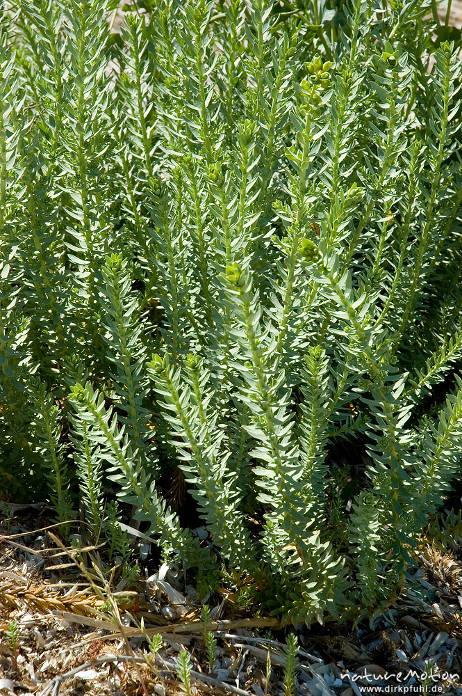 Pithyusen-Wolfsmilch, Euphorbia pithyusa, Euphorbiaceae, Strand von Rondinaria Korsika, Frankreich