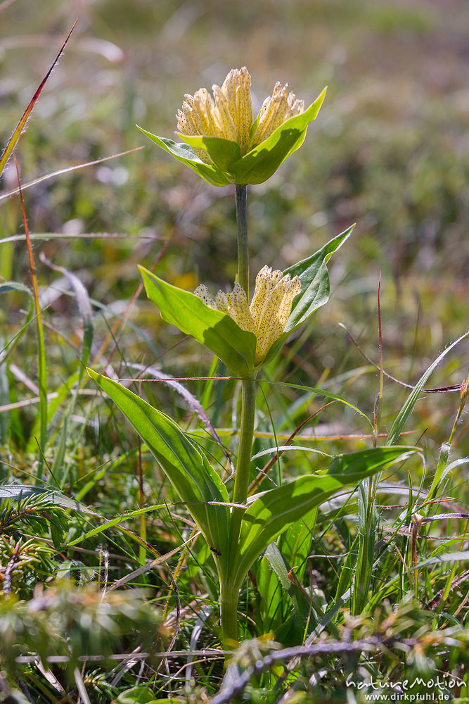 Punktierter Enzian, Tüpfel-Enzian, Gentiana punctata, Enziangewächse (Gentianaceae),blühende Pflanze, Almwiese, Puflatsch, Seiseralm (Südtirol), Italien