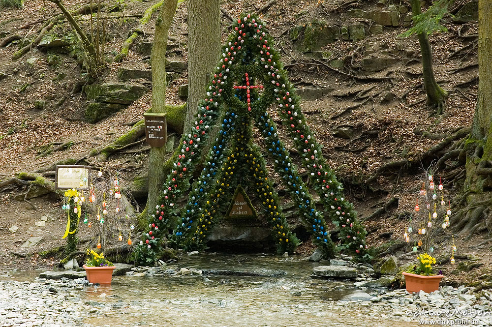Quelle der Lillach, österlich geschmückt Lillachtal, Deutschland