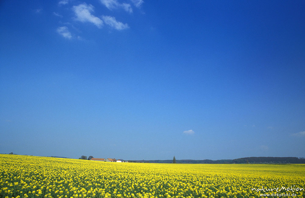 Rapsfeld mit blauem Himmel, Ballenhausen, Göttingen, Deutschland