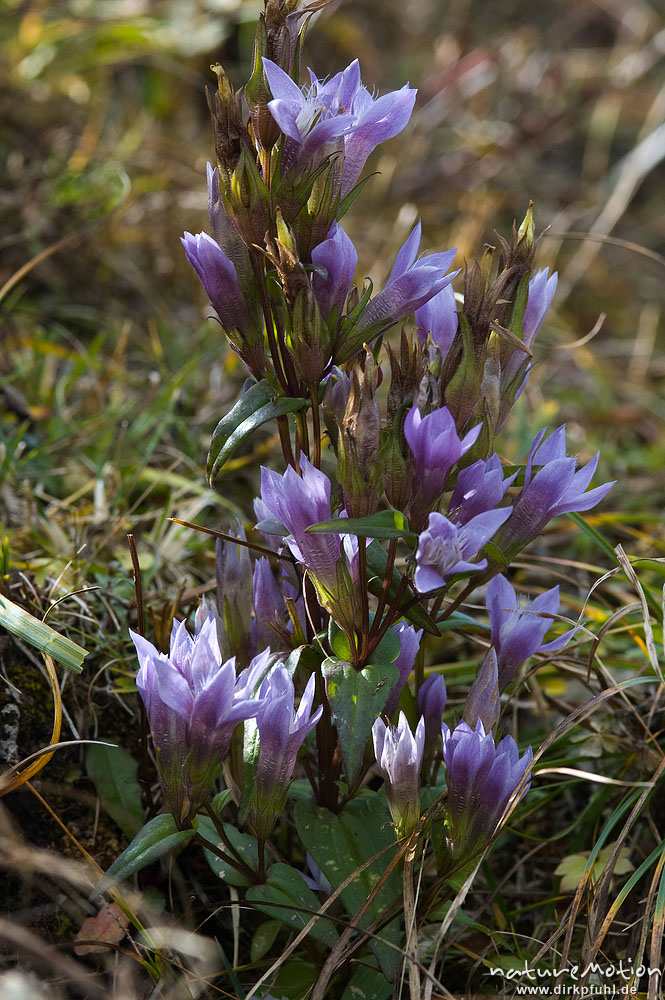 Rauher Enzian, Gentianella aspera, Enziangewächse (Gentianaceae), oder Östereichischer Enzian, Gentiana austriaca, Gentianaceae, Wegrand, Wank, Garmisch-Partenkirchen, Deutschland