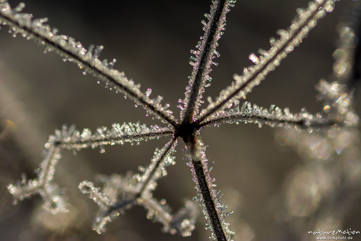 Rauhreif, Eiskristalle an vertrockneten Pflanzen, Kiessee, Göttingen, Deutschland