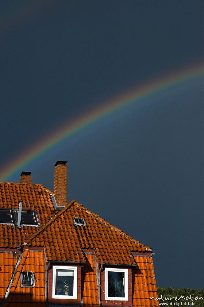 Regenbogen über Hausdach, Am Weißen Steine Göttingen, Deutschland